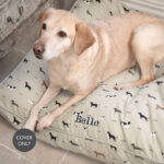 Sold as the cover only. our woof pet mattress cover is perfect for changing up your Sophie Allport pet mattress and includes illustrations of wirehaired Dachshunds. Springer Spaniels. Cocker Spaniels. black Labradors. Pugs. Jack Russells and fox red Labradors on a wheat beige background.